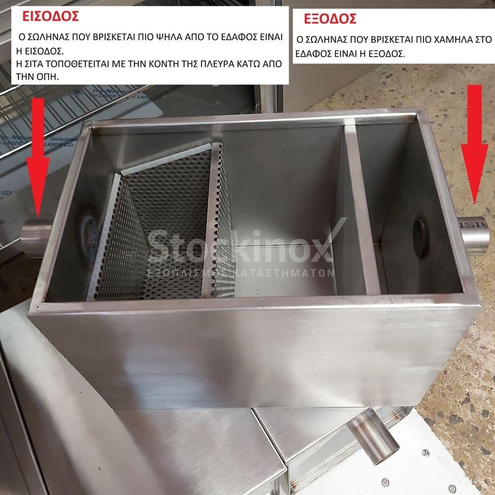 Τοποθετείται κάτω ή δίπλα από τη λάντζα και τα πλυντήρια, με σκοπό το διαχωρισμό λαδιών, λίπους και υπολειμμάτων τροφής.